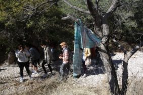 One morning, the group accompanied volunteers with the nonprofit No More Deaths for a four-mile walk in the desert on a trail used by migrants. The terrain is brush-covered and rocky in some places, and lush in other areas with shade trees. The path is “actually beautiful,” says Katie Sharar, associate director of the Earlham Border Studies Program, which is based in Tucson. But she also notes that it can be foreboding, especially if a migrant loses his way or makes the journey in the dark. No More Deaths places water and food along the trail for migrants to find and offers medical care.