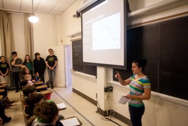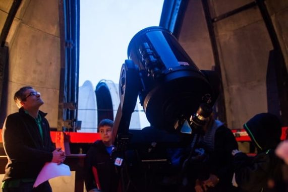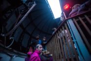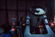 A talk on constellations, given by Sarah Betti ’17, preceded guided tours of the observatory given by Eric Smith ’15, an astrophysics major. Children, accompanied by parents, lined up to take a peek at the telescopes that are actively used by students in astronomy classes.