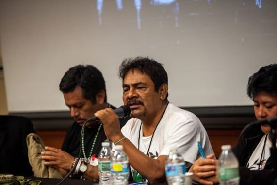 The three asked for the support of those present in demanding the Mexican and U.S. governments hold those responsible accountable for the crime. As they spoke, a petition demanding the halt of U.S. military aid to Mexico was circulated around the auditorium, along with photos of the 43 Mexican students.