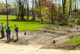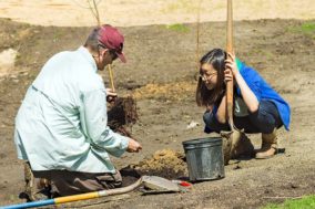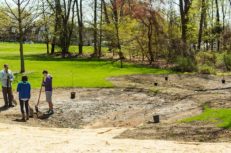 This morning, Brandon Sickel, 19, a freshman from Silver Spring, Md., and Vivian Sun, 20, a sophomore majoring in biology, dig into the clay-like hard soil in two depressions near the Duck Pond and then place a three-foot, water-loving pond cypress into the shallow hole. And so begins a new rain garden. The project is a collaboration between Haverford College Arboretum and the student-run Committee for Environmental Responsibility.