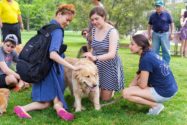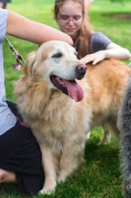 Joining this year’s coterie of canines, including 7-year-old pit mix Annie and 9-year-old golden retriever Rosey, was even a presidential pooch. Allie, Dan Weiss’ golden retriever, was among the dogs getting smothered with snuggles on Tuesday afternoon on Founders Green.