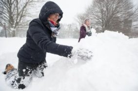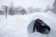 Building a snow fort in front of Founders. Photo by Ryan Gooding ’16
