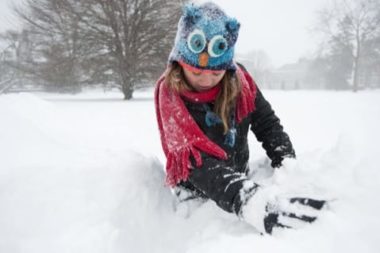 Arlene Casey ’19 digs a snow fort near Gummere during the January blizzard. Photo by Caleb Eckert ’17.