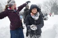Making snowballs on Founders Green. Photo by Ryan Gooding ’16