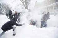 There was a huge snowball fight near Founders. Photo by Ryan Gooding ’16
