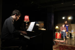 Last weekend Greasepaint, the Bi-Co’s student-run musical theater company, presented Ghost Quartet, an intimate musical by Dave Malloy, creator of current Broadway “popera” hit Natasha, Pierre & The Great Comet of 1812. And if opening night wasn’t nerve wracking enough, Malloy himself was in the audience in the DC’s Black Box Theater, along with the three other actors who originated the parts in the professional production.