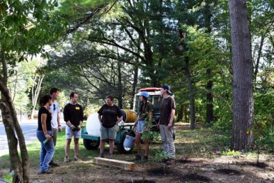 “I love trees!” said Brandon Sickel ’18 during a break from mulching during the volunteer event. “I’m enjoying planting new trees, helping restore this stream bank, and hanging outside, enjoying our campus. Working for the Arboretum is the favorite part of my day.”