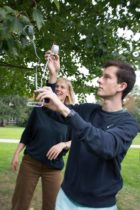This fall semester, students in the seminar participated in a collaborative, outdoor art installation with the Philadelphia-based artist and sound engineer Sam Cusumano. Under the moniker Electricity for Progress, Cusumano seeks to create experiences between music, technology, and the environment with the goal of connecting people to nature in new and meaningful ways. In this spirit, students designed an outdoor art installation that drew upon the immediate physical environment of Haverford’s campus and arboretum by utilizing technology that sonifies plant sounds. As part of the art installation students learned how to build their own biodata sonification devices, which are machines that measure conductivity and create musical sounds to represent changes in the bioactivity of plants.