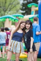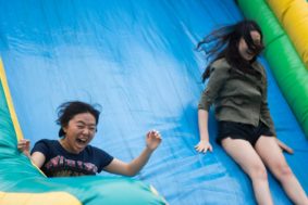 Jiawen Zhang ’21 and Songyu He on the inflatable slide. Photo by Wanyi Yang ’20.