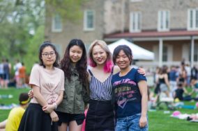 Jiawen Zhang ’21, Siyan Wang ’18, Songyu He and Yanyu Zhao on Founders Green.
