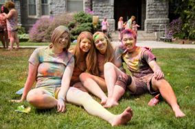 Students celebrate the coming of Spring with a Holi Festival on Barclay Beach. Photo by Justin Brendel ’18.