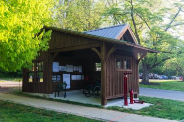 Inspired by the late 19th-century Victorian architecture of SEPTA’s Regional Rail stations and the Haverford faculty residences that line College Lane, the two students designed a small but stately structure with a gabled roof and several multipaned windows. It has a patio, sheltered waiting area with seating, a covered rack for both personal and bike-share bikes, and air pump and bicycle “fix-it” stations.