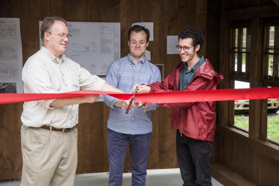 While still in the design phase, they joined forces with the College’s Committee for Environmental Responsibility (CER), which is developing a campus bike-share program and was looking for a place to store the shared bikes. So Huber and Rhodes expanded the scope of the project to include bike storage and maintenance.