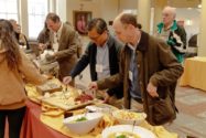 People grab food from the buffet at the president’s reception in Zubrow Commons. Photo by Dex Coen Gilbert ’21.