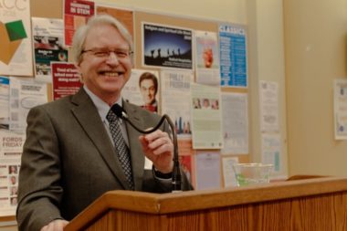 Kim Benston delivers his remarks at the president’s reception. Photo by Dex Coen Gilbert ’21.