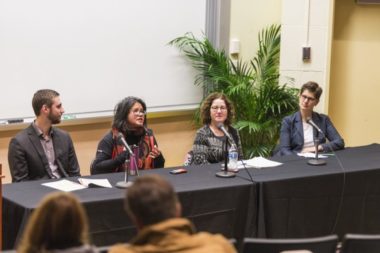 Associate Director of the KINSC Marielle Latrick, HCAH Faculty Director Ken Koltun-Fromm, and Executive Director of the CPGC Eric Hartman spoke on a panel about the work of the academic centers. Photo by Kian Williams ’22
