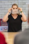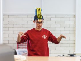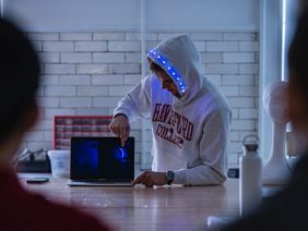 Photos of a class presentation of student-made wearable tech by Patrick Montero.