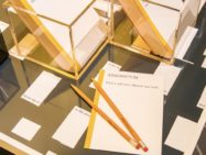 My experience with the exhibit began on the first floor of the library where I found a collection of “scores,” or cards, organized by subject, with varying instructions written on them.