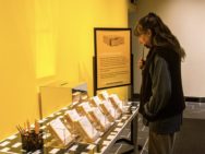 The exhibit, which runs through December 15, encourages participants to go on their own journey and undertake their own search, which can start in the library or the Cantor Fitzgerald Gallery. Upon finishing, they should deposit their completed and notated scores into bins located by the scores. Rasheed is assembling the collected cards into a book, which will be released Dec. 4 at an on-campus launch party.