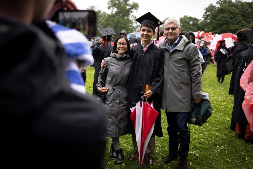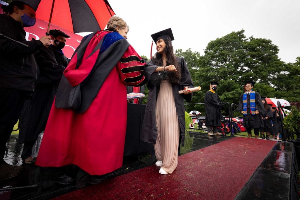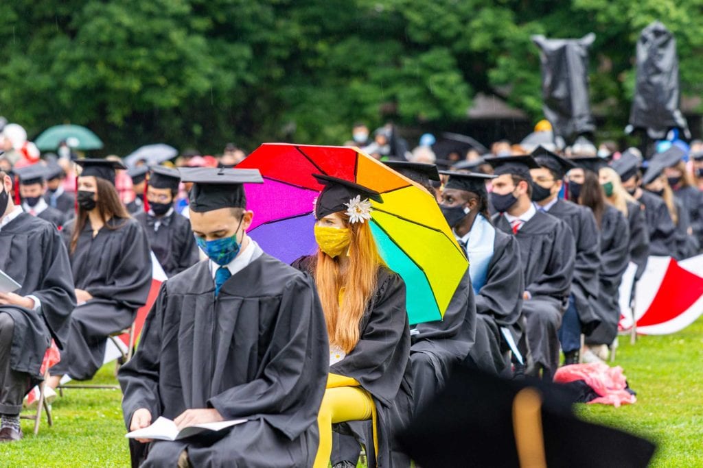 On Saturday, May 29, the College held its 183rd Commencement. But it was a ceremony unlike any other. It marked the College’s first large, in-person campus event in well over a year, was held on the cricket field (to maximize distancing), was livestreamed across the globe for the first time ever, and took place outside in the pouring rain.