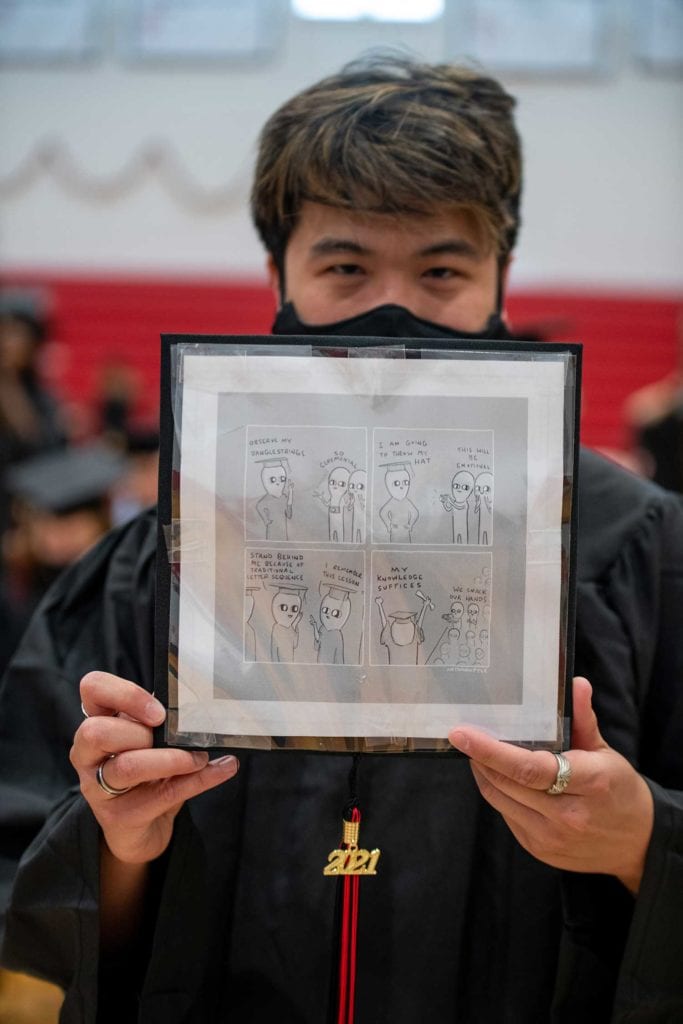In her speech, Solomon doled out advice from her 11-year-old son, who wanted the graduates to know, “Whatever career you choose, you’ll do great. And even if you don’t get famous, some people will remember you when you die.” She also encouraged the Class of 2021 to, “maybe instead of ‘the good life,’ use your education and the struggles of the last four years to figure out what constitutes A good life.”