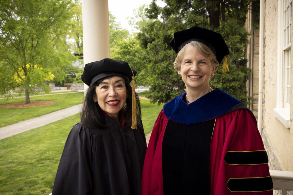 Karen Korematsu, founder and executive director of the Fred T. Korematsu Institute, received an honorary degree at the ceremony, recognizing her work as a civil rights advocate and educator. In her remarks, she remembered her father, the namesake of her Institute, who brought a historic Supreme Court case, challenging the World War II-era incarceration of people of Japanese ancestry. (Though he lost that case, his almost-40-year federal conviction was overturned in 1983.) She urged the class to follow his lead and make activism a part of their life beyond Haverford.