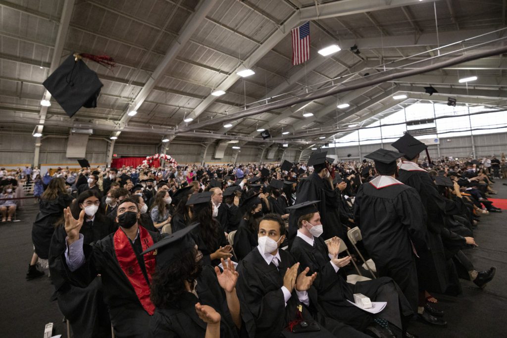 This dichotomy was echoed in the speech of the selected student speaker, Che Young Annette Lee ’22, who took inspiration from the Korean word for both hello and goodbye. “The word anyeong encapsulates both a greeting and a farewell, both a beginning and an end,” she said in her remarks. “So, anyeong to all of our precious college moments. But anyeong to the new memories we’ll form, to the new people we’ll meet and cherish.”