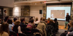 Also fascinating was the kickoff event on Dec. 1, a talk by Rebecca Fisher ’18, an alumnus and HIP incubator fellow who conjured up Philadelphia’s much-acclaimed Beyond the Bell Tours with classmate Joey Leroux ’18 while a student at Haverford. The Philadelphia company’s offerings include a “Badass Women’s Historical Tour of Philadelphia” and a “Gayborhood/LGBTQ History” tour. The aim: to create inclusive experiences highlighting marginalized communities, peoples, and histories that have shaped Philadelphia through movements, activism, and resistance. In her talk, Fisher, who was Haverford’s Tuttle Creative Resident during the fall semester, addressed the steps and challenges of turning an idea hatched during HIP’s summer incubator program into a business reality.