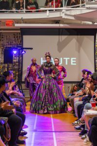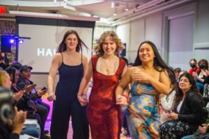 Saturday’s fashion show was presented by Haute, a digital platform developed by students who participated in the HIP 2021 summer incubator. Dedicated to promoting sustainability and inclusivity, the platform seeks to promote emerging fashion designers of all backgrounds through immersive digital content and in-person events. The fashion show included regional designers beyond Haverford’s confines, such as like-minded Drexel University designers. “[Haute organizers] also connected with fashion designers across the country,” says Nickel. “They had our students here model the clothes; there were Bi-co student photographers; it was a fantastic success.”