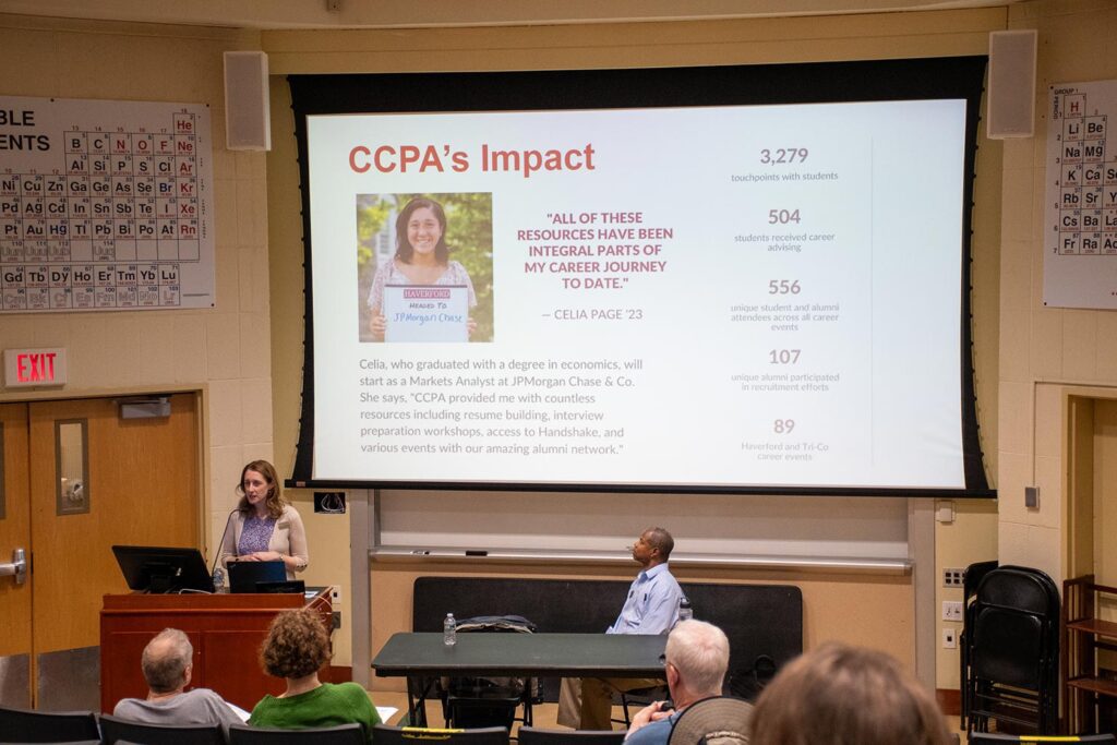 Haverford’s plans for the future also took center stage at Friends and Family Weekend this year. On Saturday afternoon, President Wendy Raymond shared campus updates and a broad overview of Haverford 2030, the College’s ambitious strategic plan. Director of Athletics Danielle Lynch discussed a new plan for Haverford athletics, which charts the program’s course across the next seven years.
