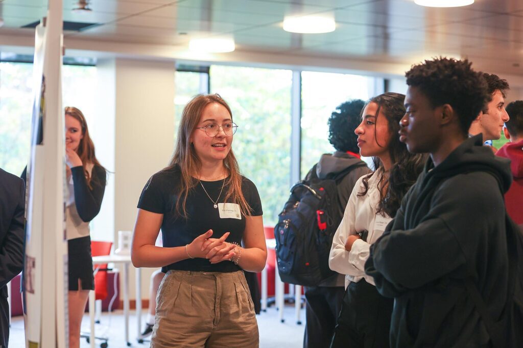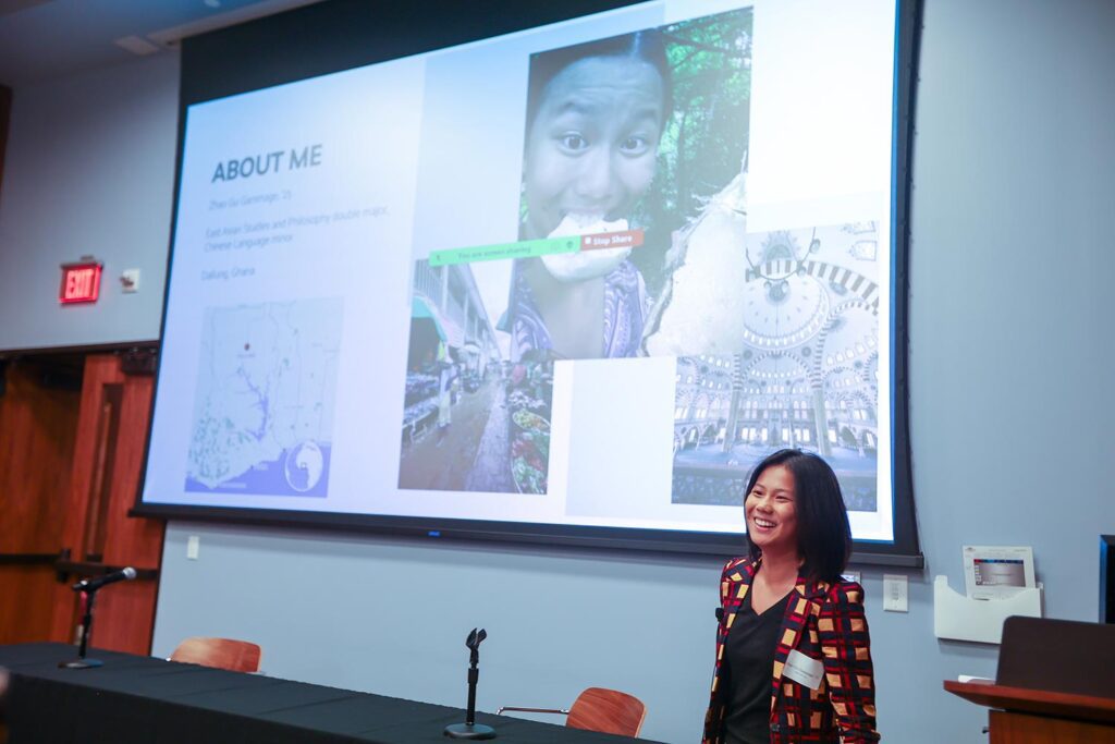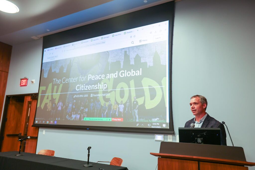 After having their photos taken with Haverford’s black squirrel mascot, families and friends joined an array of panels covering vital topics ranging from student mental health, Haverford’s resources that support the career and internship search, opportunities to study abroad, and resources available from the Advising team and the Center for Gender Resources and Sexuality Equity. The Center for Peace and Global Citizenship hosted a poster fair and a series of talks featuring dozens of students from across majors who spent the summer advancing peace, justice, inclusion, and sustainability worldwide, from Ardmore to Amman.