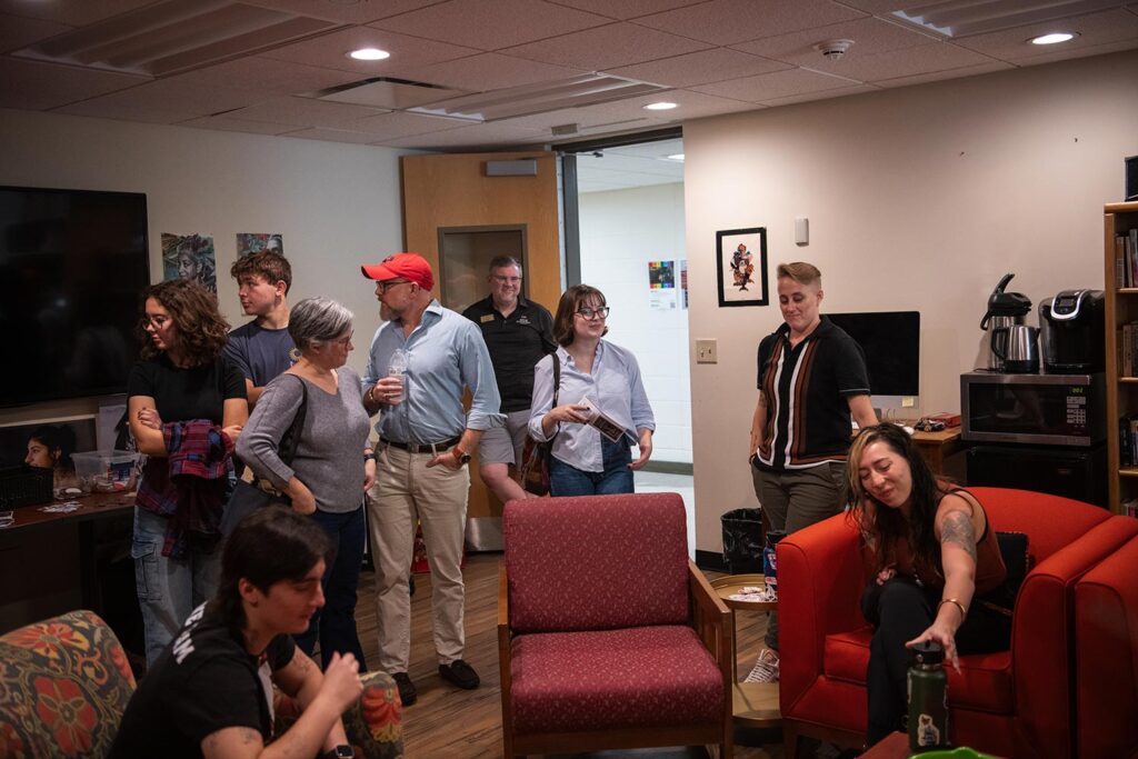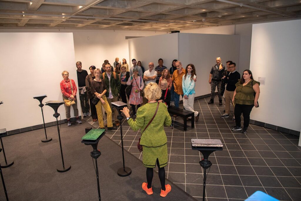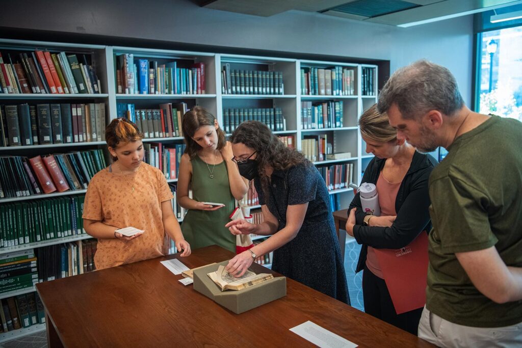 The weekend saw students accompanying their families and friends for tours of the Arboretum and Haverfarm and soaking in compelling exhibitions that examine sound as a medium in contemporary art practices and the exceptional legacy of alum and trailblazing art historian Paul B. Moses. They toured VCAM’s Maker Arts Space and walked away with new squirrel keychains. At Lutnick Library, Conservator Bruce Bumbarger was on hand to showcase the library’s tabletop printing press, and guests could print coasters with quotes that extoll the benefits of a liberal arts education.