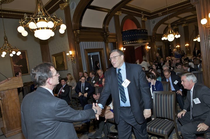 Dan Weiss thanks Norm Pearlstine ’64, who hosted the event.